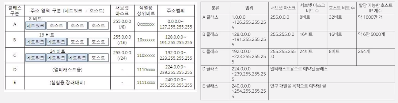 - IP 주소를 클래스별로 규격화