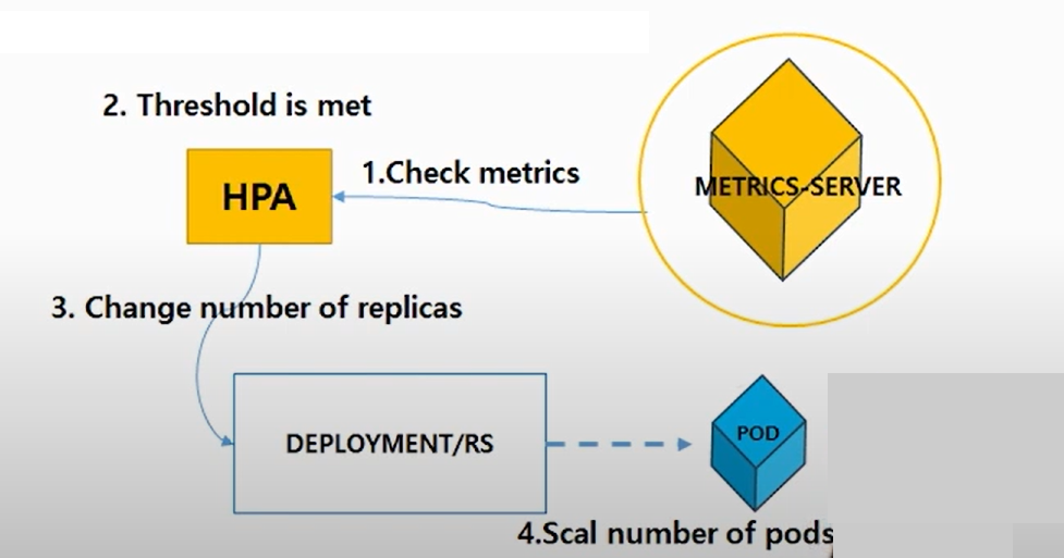 - HPA는 기본 30초 간격으로 Pod 리소스 사용량을 check HPA에 설정한 임계 값을 초과할 경우 pod를 확장