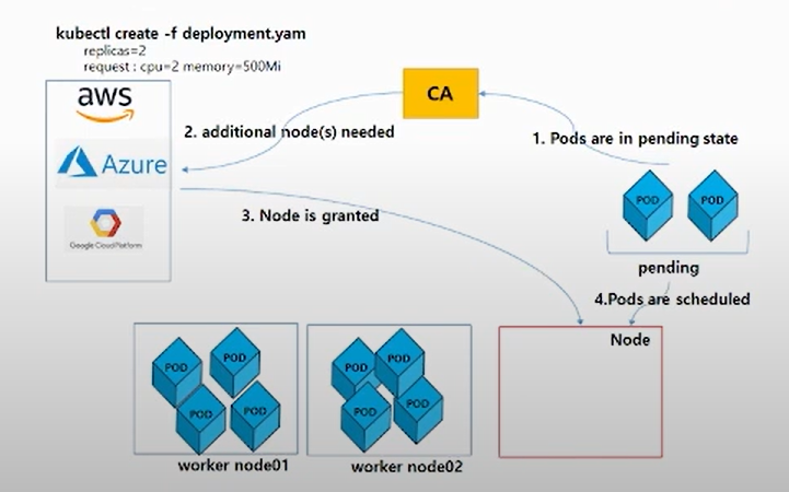 - 기존의 worker node의 resource가 부족할 경우 worker node를 자동으로 확장