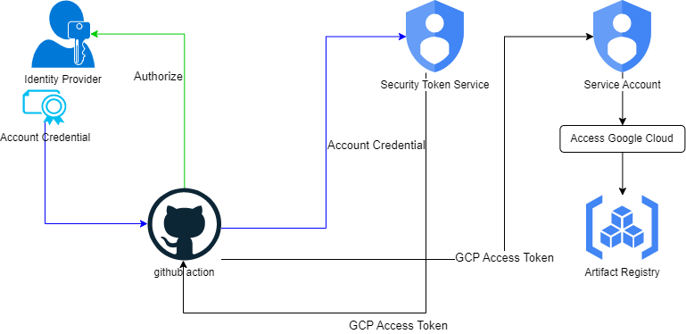 저희는 이번 시간에 Github Action을 WIF(Workload Identity Federation)을 사용하여 GCP 서비스에 연동하는 예시를 이용하겠습니다.