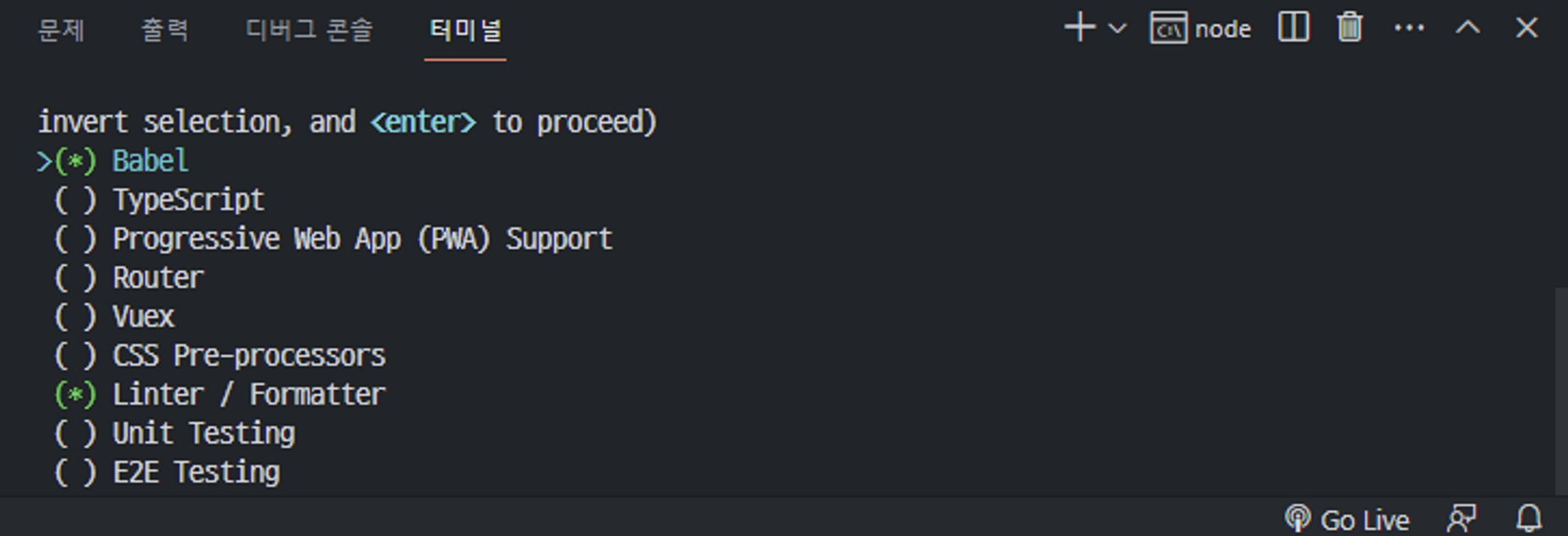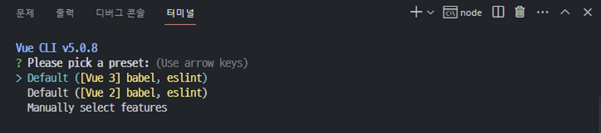 💡 추가적으로 vue cli를 설치하고 싶지 않으신 분들은 터미널에서 npx @vue/cli create <프로젝트명> 명령으로 곧 바로 프로젝트 생성이 가능합니다!