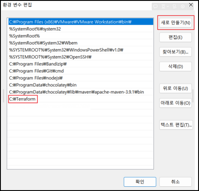 - 새로만들기 → C:\Terraform 등록