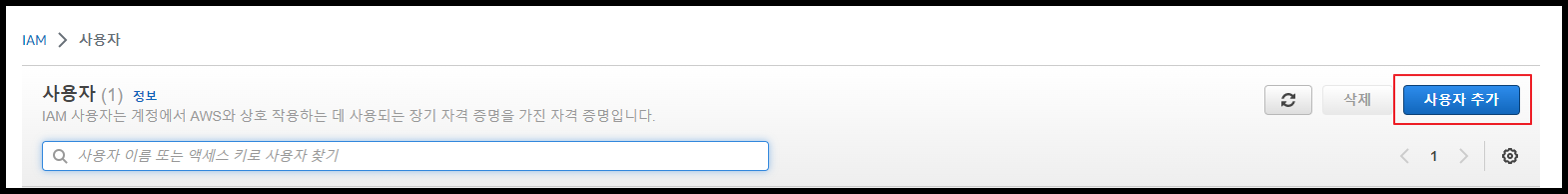 - AWS 콘솔 접속 → IAM → 사용자 → 사용자 추가