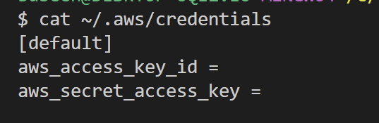 - cat ~/.aws/credentials