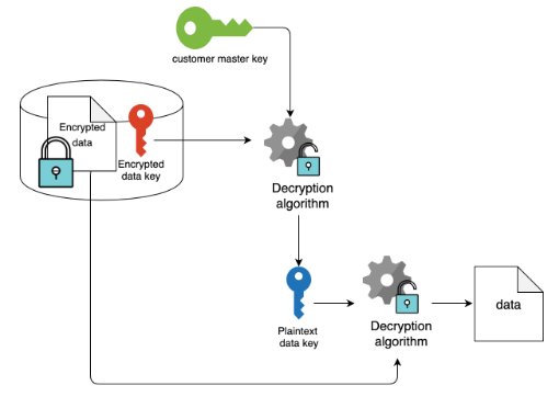 - 암호화된 data와 Encrypted data key(암호화 키)는 함께 보관(이 방식을 Envelope Encryption 방식이라함)
