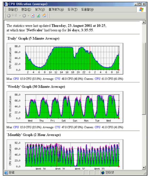 MRTG는 위 대상들을 일간, 주간, 월간, 연간으로 구분해 그래프로 시각화해주며,
