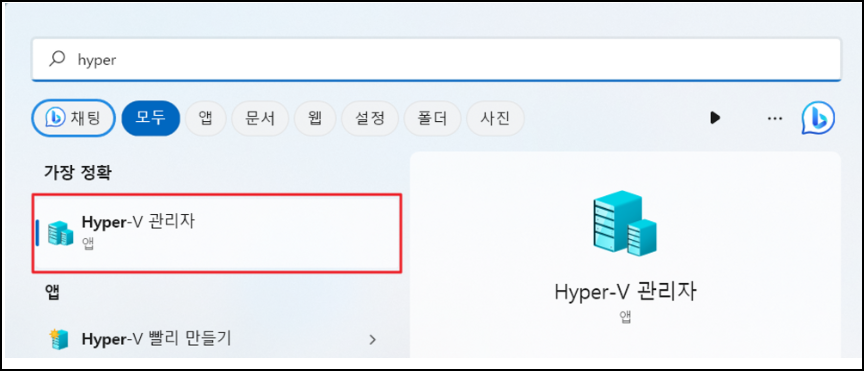활성화 후 재시동을 한 번 한 다음 Hyper-V 관리자를 실행합니다.