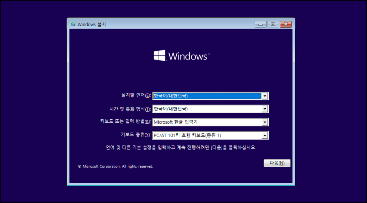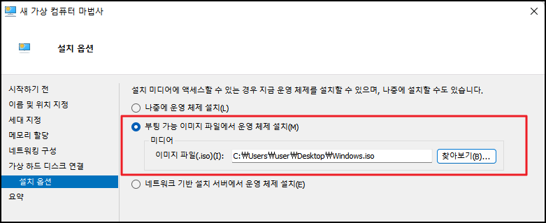 설정을 완료한 후 가상 컴퓨터를 실행시키면 설정한 이미지 파일의 운영체제가 설치됩니다.