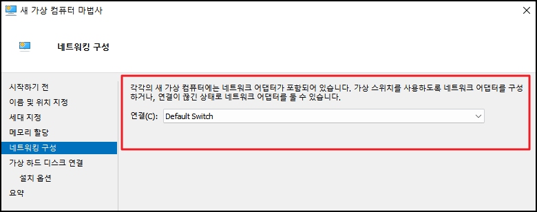 네트워크 어댑터를 구성할 수 있도록 가상 스위치를 선택합니다.