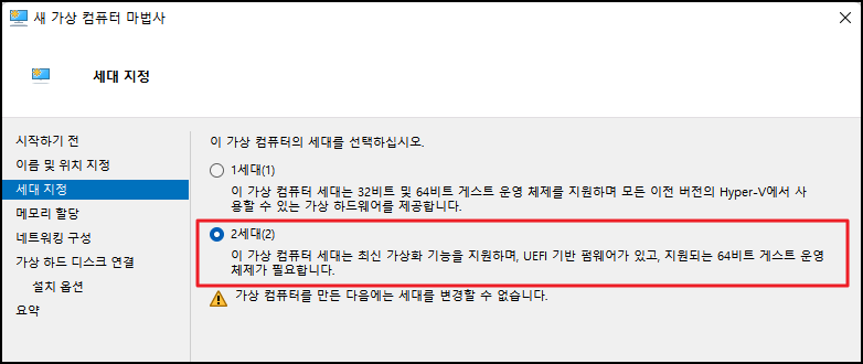 가상 컴퓨터의 세대를 선택해줍니다.