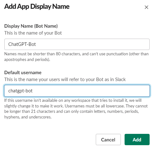 우선 Slack에서 사용할 ChatGPT Bot을 생성해봅시다.