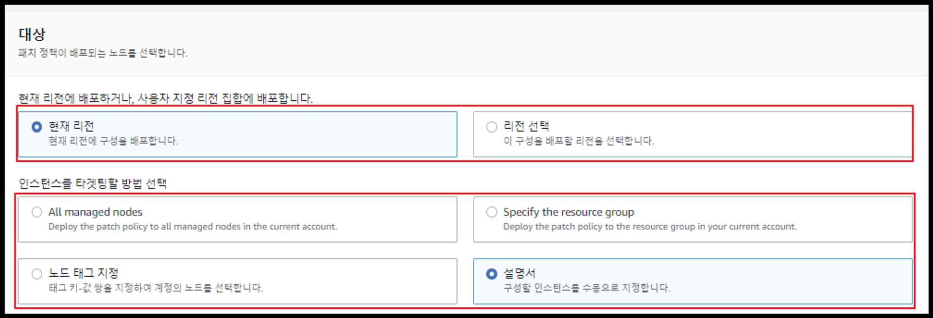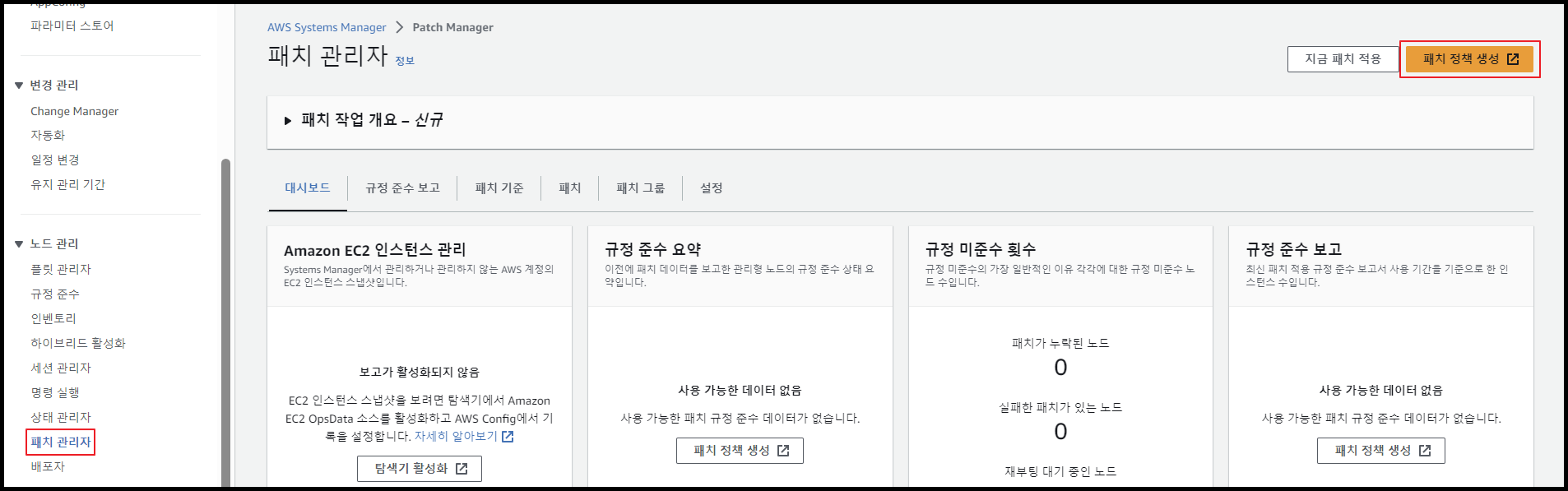 패치 정책의 경우 지원되는 AWS 리전이 한정되어 있어 확인이 필요합니다!!