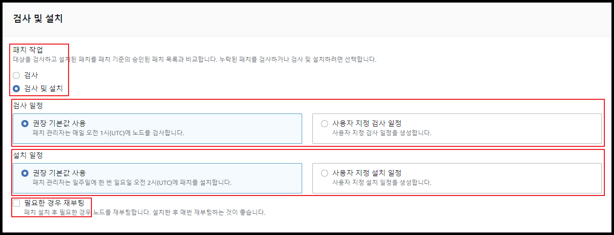 3. 설치일정 설정으로 발견된 필요 패치를 진행할 시간 설정