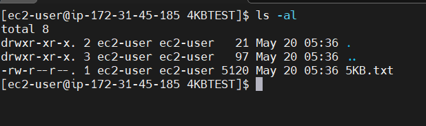 5KB크기를 가진 파일을 생성한뒤