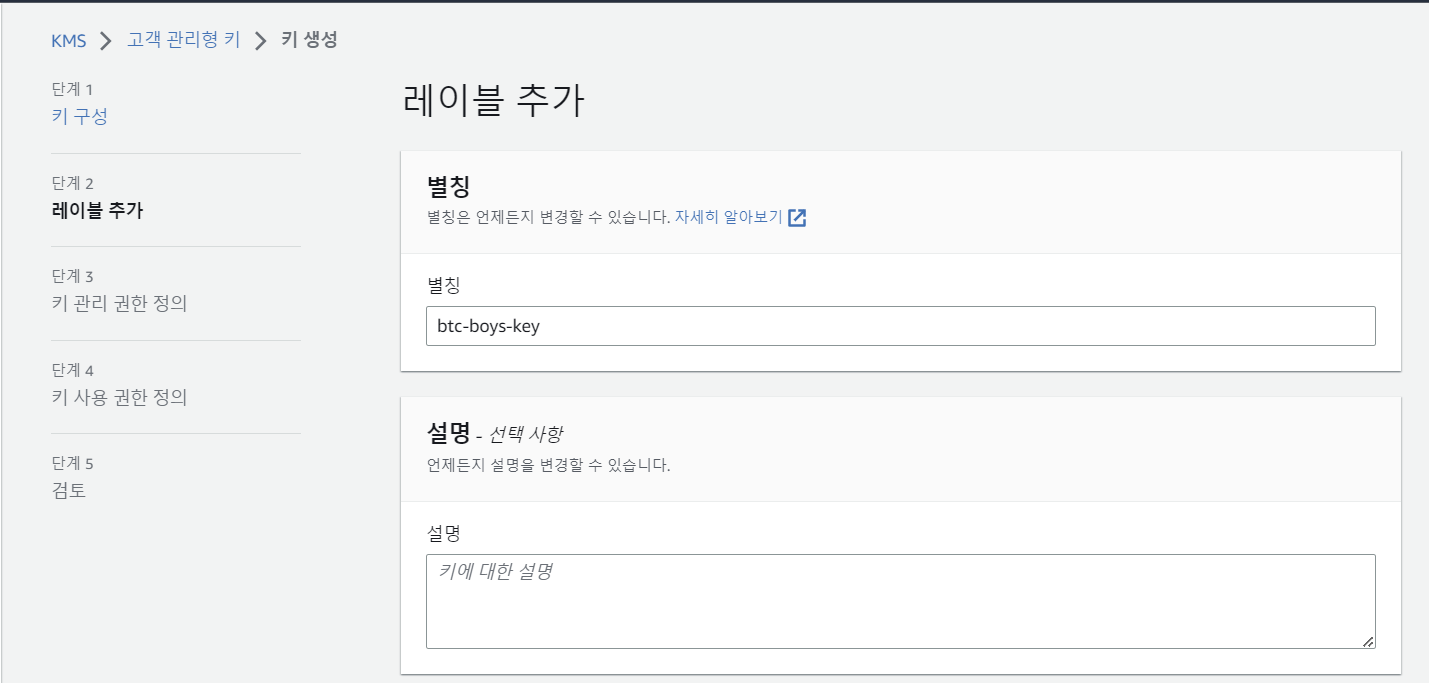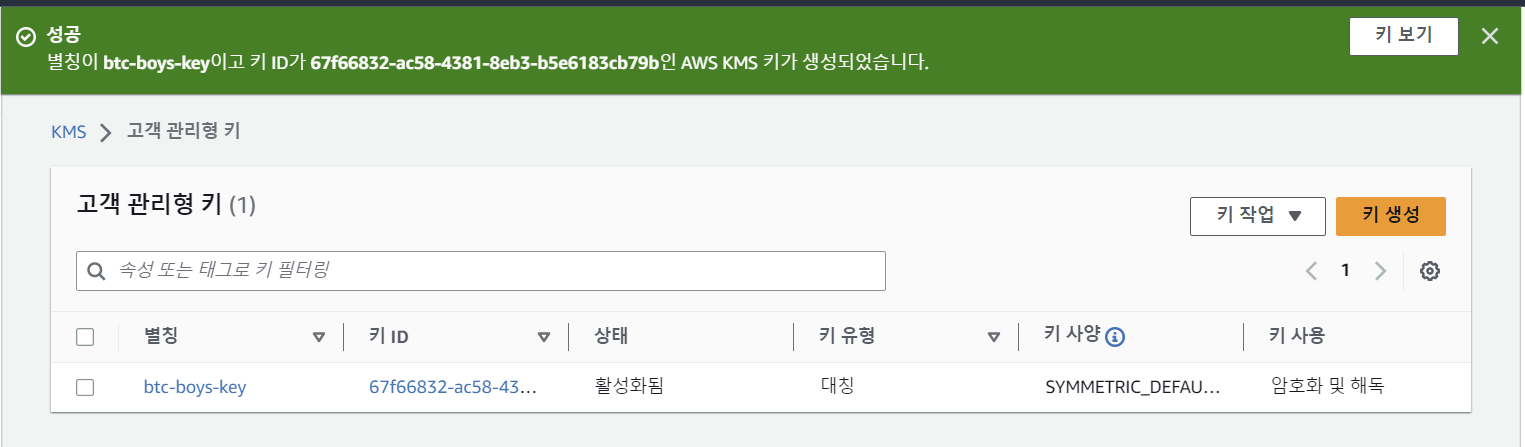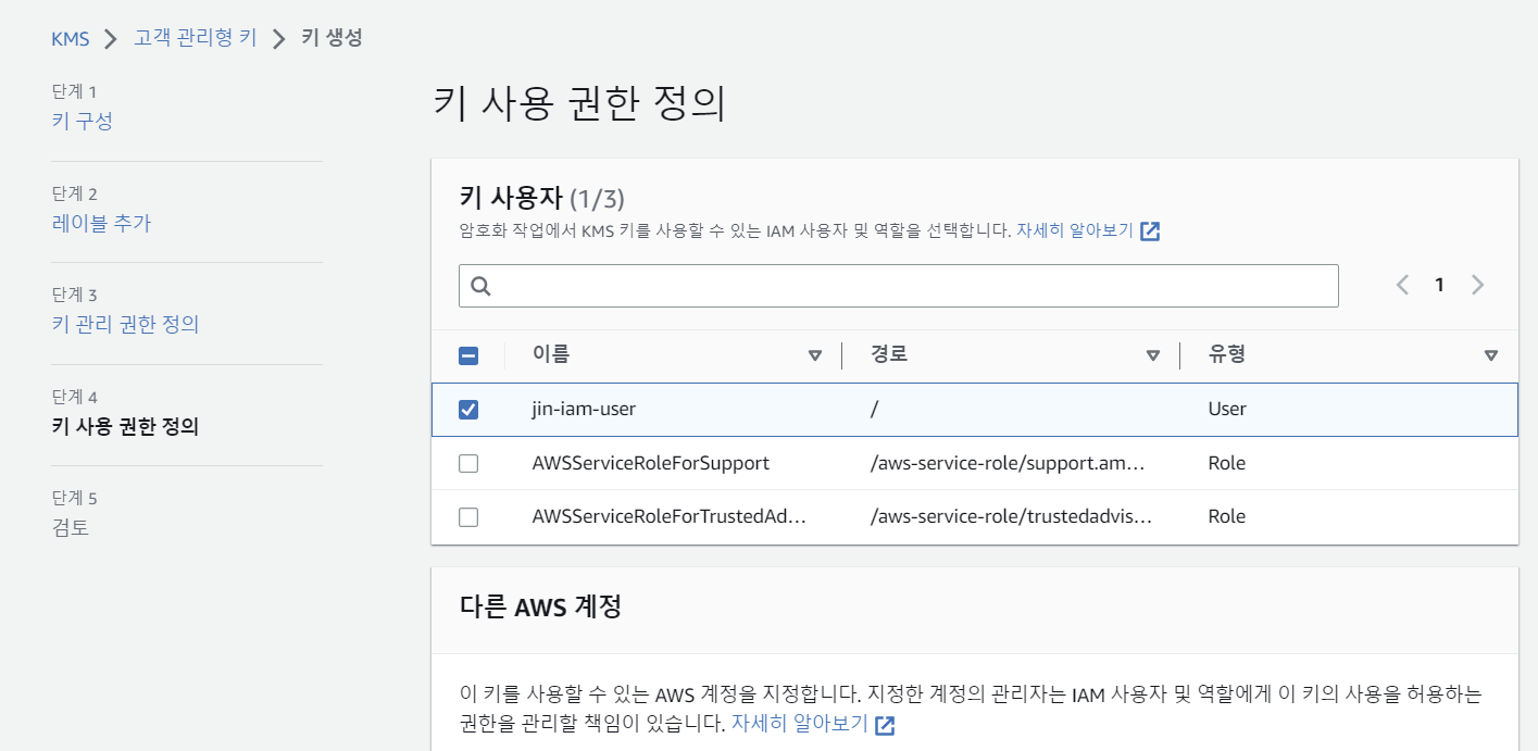 우선 사용할 aws kms 키들을 생성 해보겠습니다.