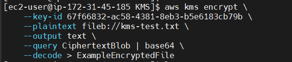 모든 정보들을 입력하고 aws cli를 사용하면 ExampleEncryptedFile이 생성됩니다.