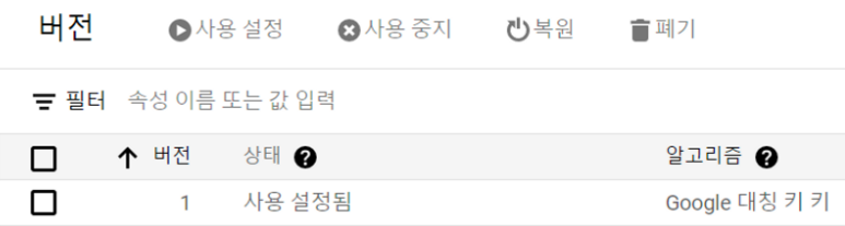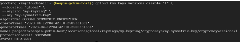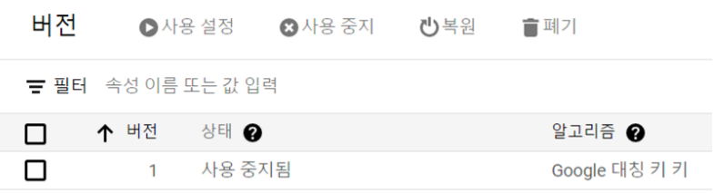 처음으로 생성된 1버전의 키를 비활성화 하는 명령어입니다.