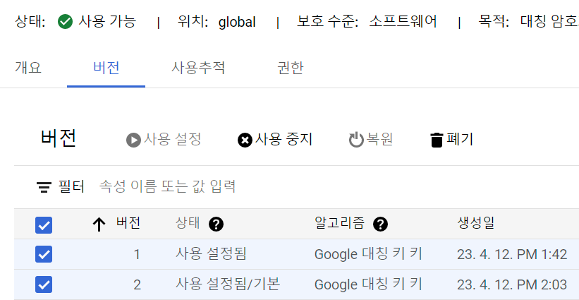 새 암호화 키 버전을 생성하여 키 회전을 수행할 수 있습니다.