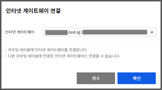 - 4번에서 생성해두었던 인터넷 게이트웨이를 해당 라우팅 테이블에 연결해줍니다.