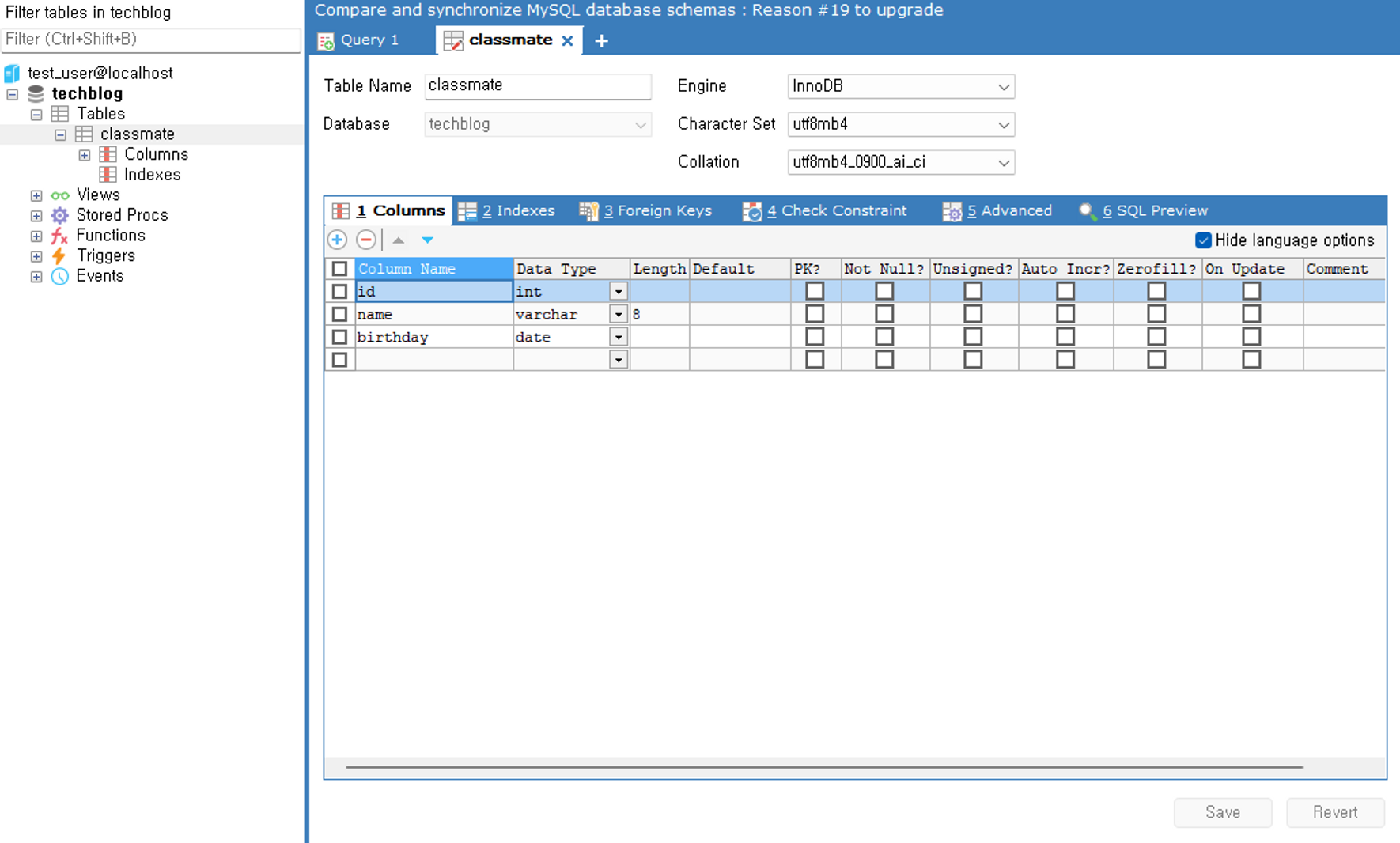 여기서 데이터를 넣고 싶은 테이블, 컬럼을 확인할 수 있습니다.