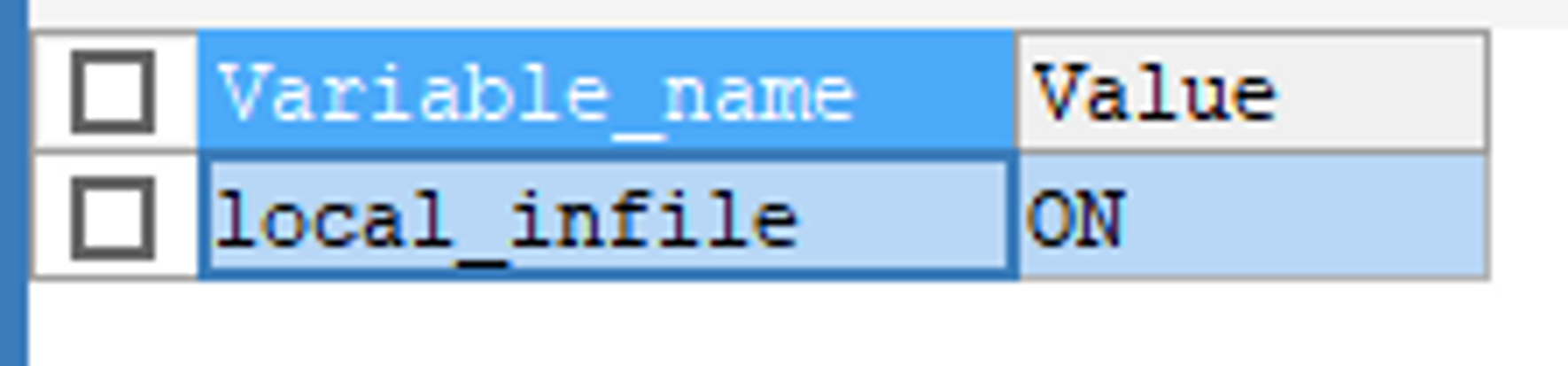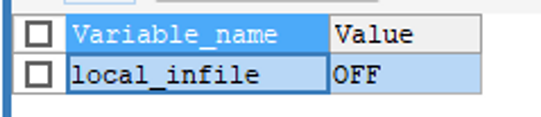 SHOW GLOBAL VARIABLES LIKE 'local_infile';