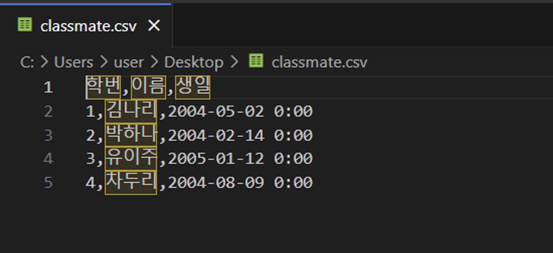 csv 파일 import 하기