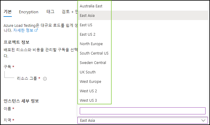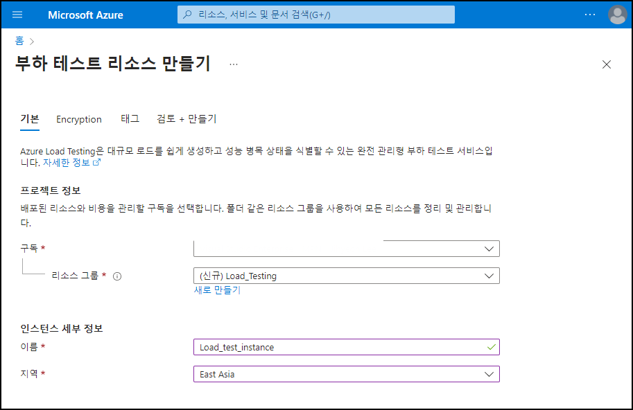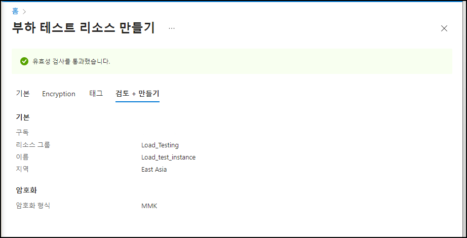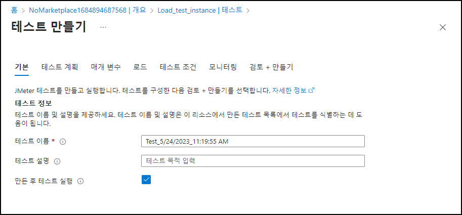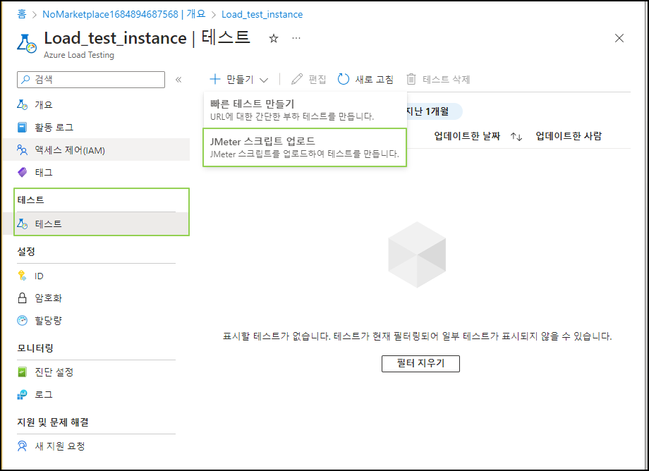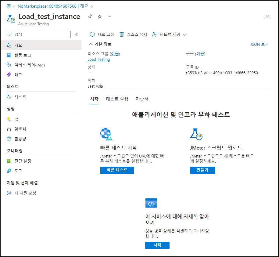 짜잔 ~ Load Testing 리소스가 생성되었어요.