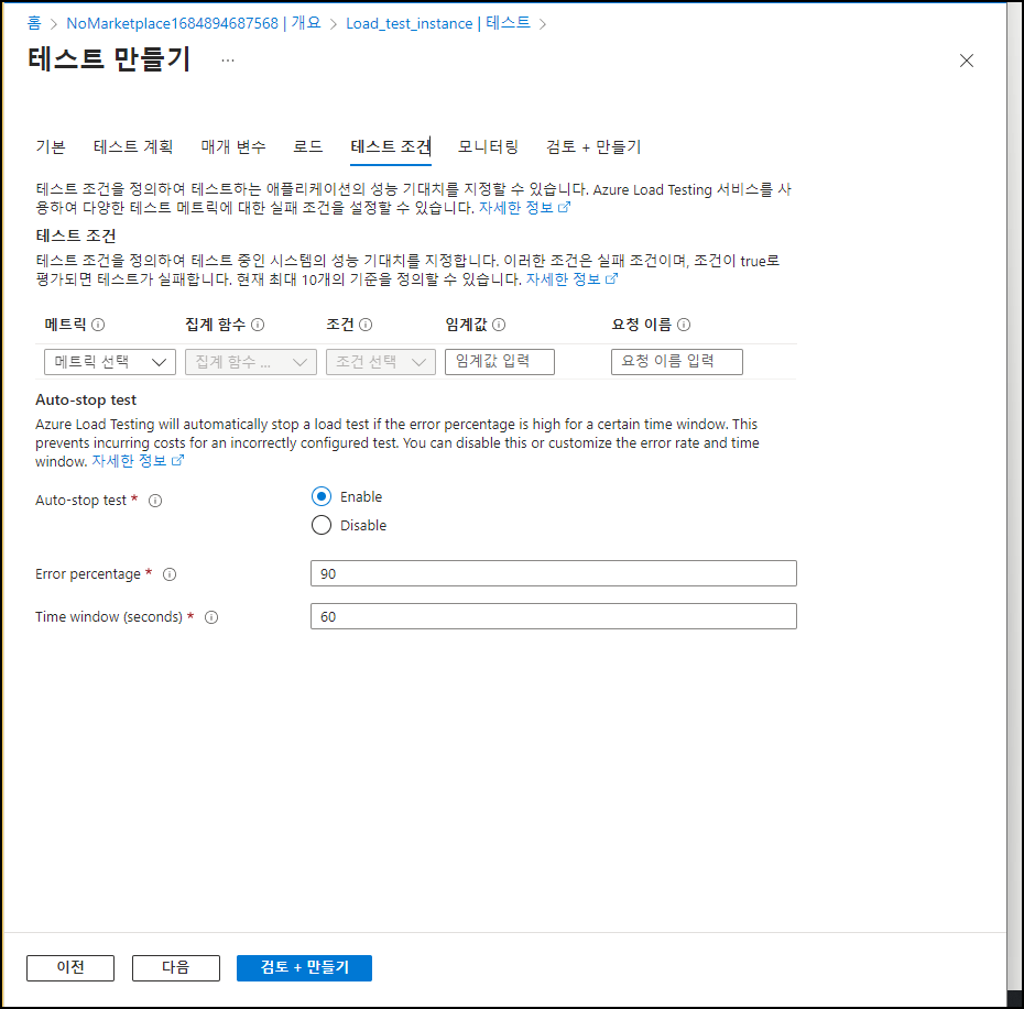 테스트 조건에서 필요한 메트릭에 대해서 세부적으로 설정하고