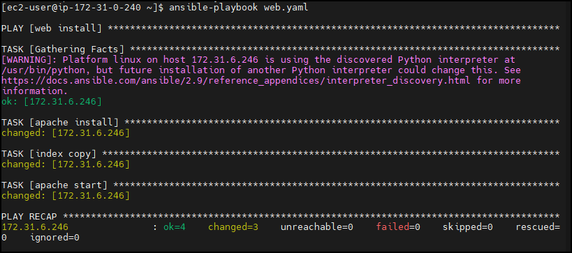 그런 다음 playbook을 실행합니다.