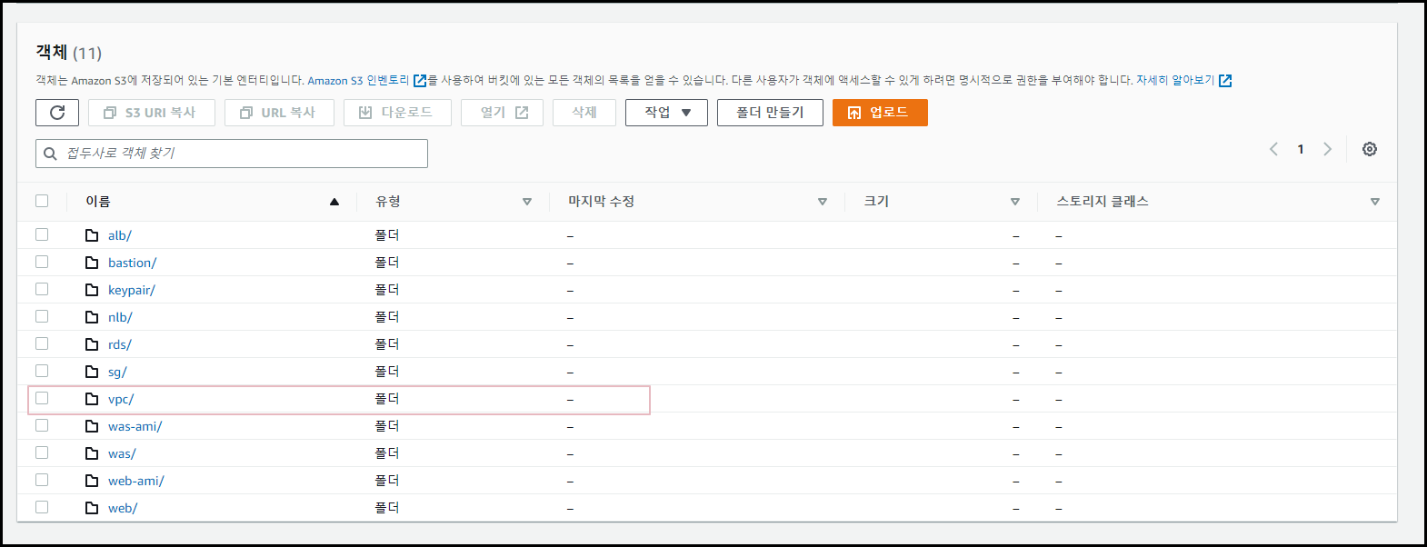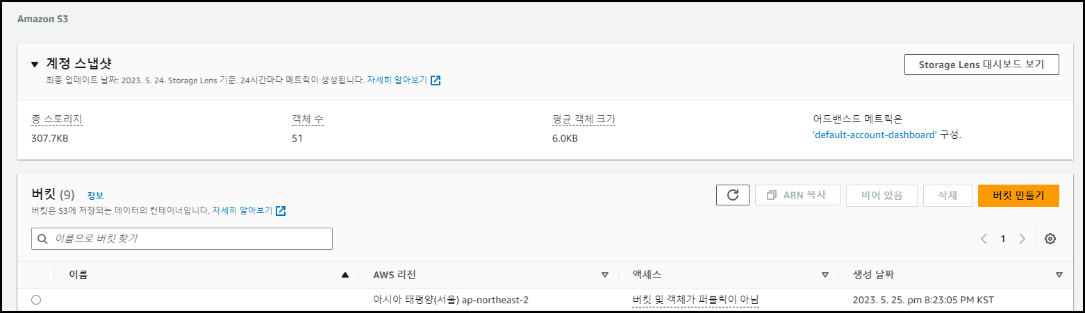 이렇게 AWS 콘솔에서 S3 Bucket이 생성된 모습을 확인할 수 있습니다 ㅎㅎ