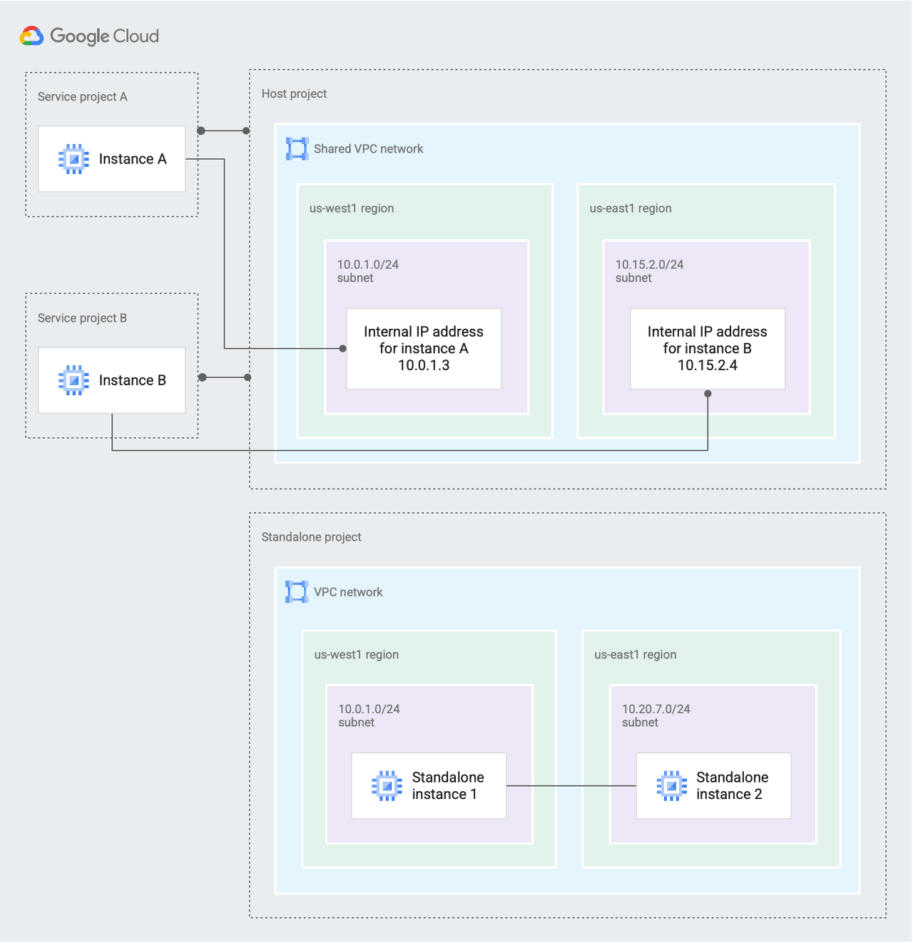 호스트 프로젝트가 사용 설정된 경우 네트워크를 공유하는 옵션은 두 가지입니다.