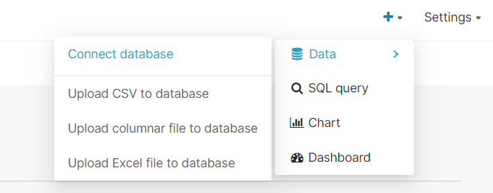 1. 우측 상단의 ➕ 를 클릭한뒤 Data > Connect database 선택
