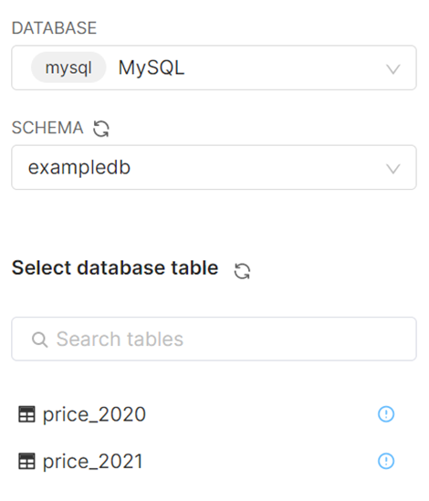 사용할 DB와 Schema를 선택 후 table을 선택해주면 끝입니다!