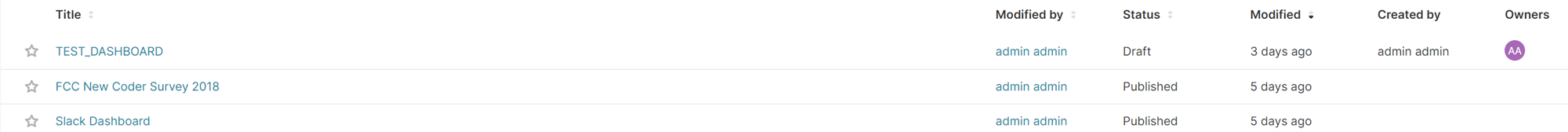 마지막으로 DASHBOARD를 생성해주면 차트를 그리기 위한 모든 준비과정은 끝입니다.