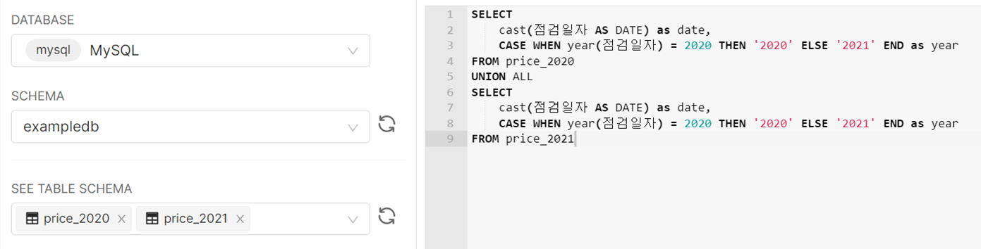 Superset의 대시보드들은 SQL문 기반이기 때문에,