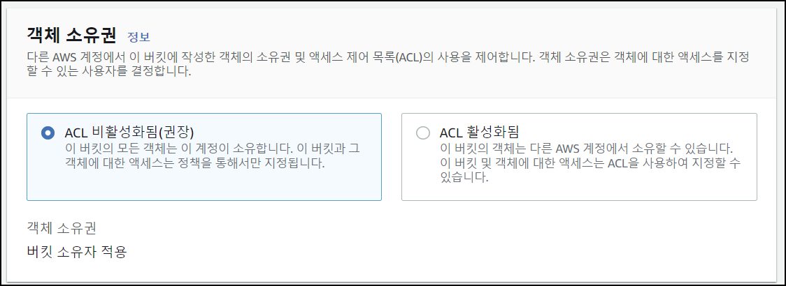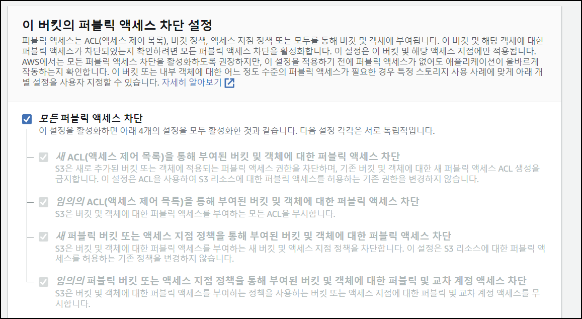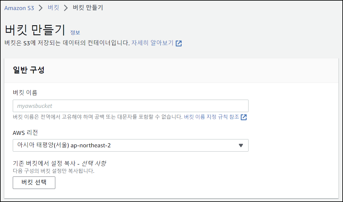 3. S3버킷을 생성해줍니다. (default 값 - 페이지는 S3에서 불러오기 때문에 CloudFront에 연결하기 위한 S3를 구성)