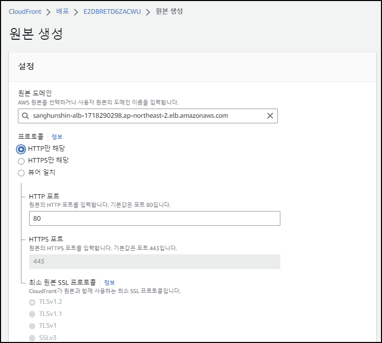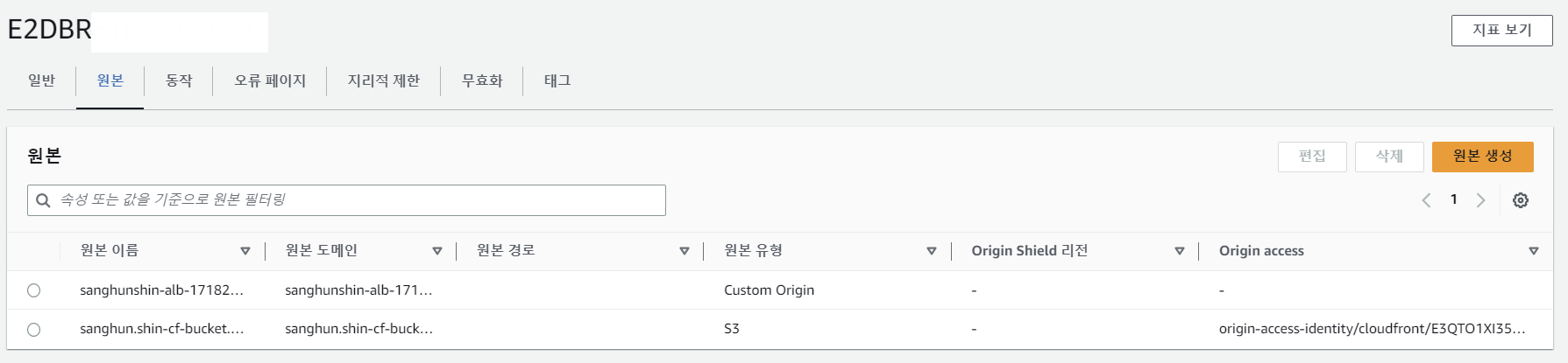 1. ALB를 원본도메인으로 하는 Origin을 생성해줍니다.