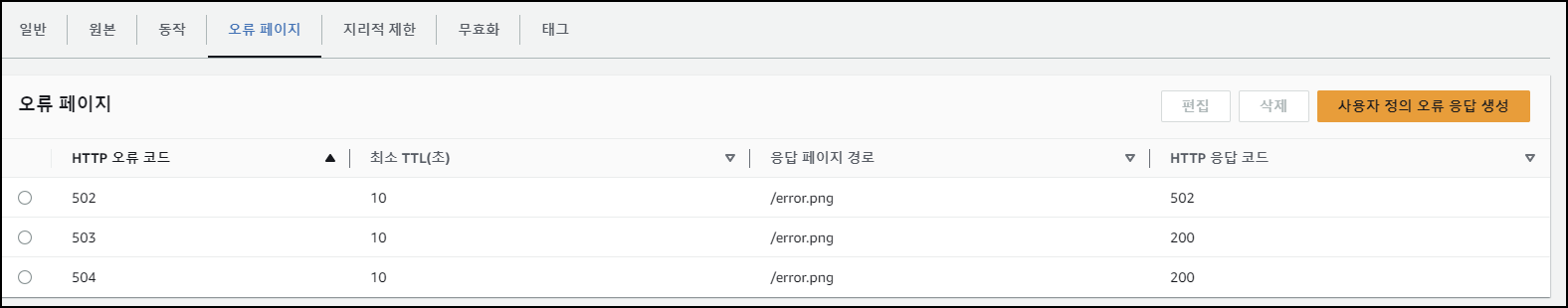 7. Cloudfront ErrorPage 탭에서 사용자 정의 오류 응답 생성