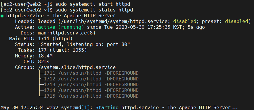 반대로 WEB1/WEB2 서버 서비스 재시작하여