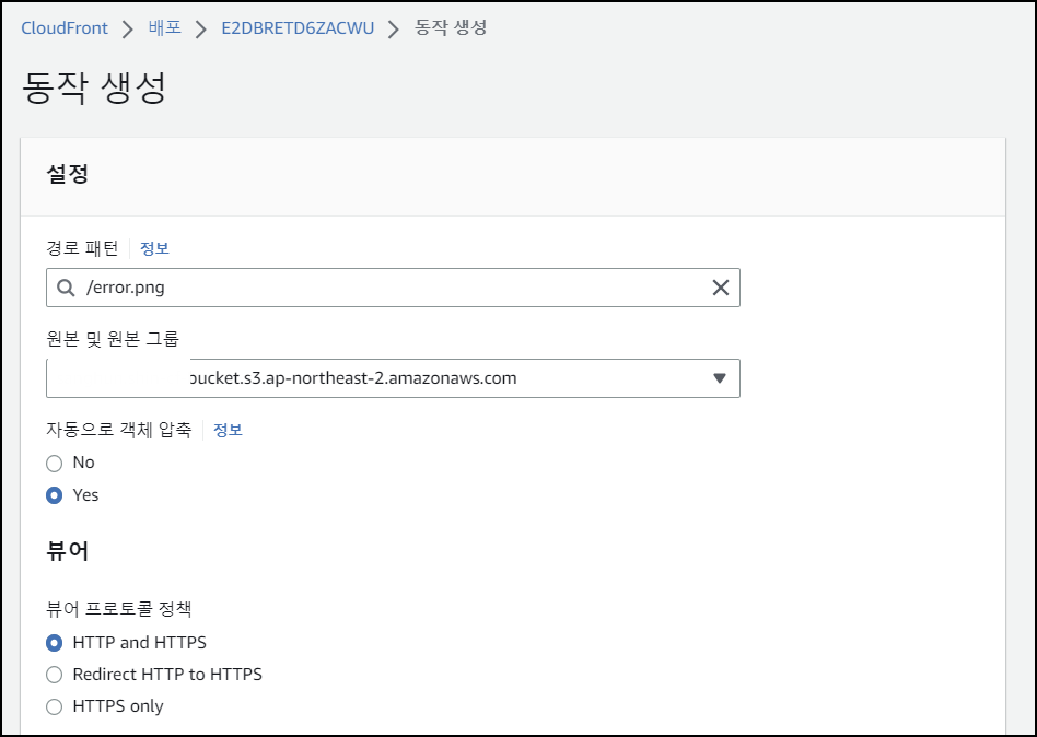 . 응답 페이지 경로 입력(S3 Origin 설정한 경로패턴과 동일하게 설정)