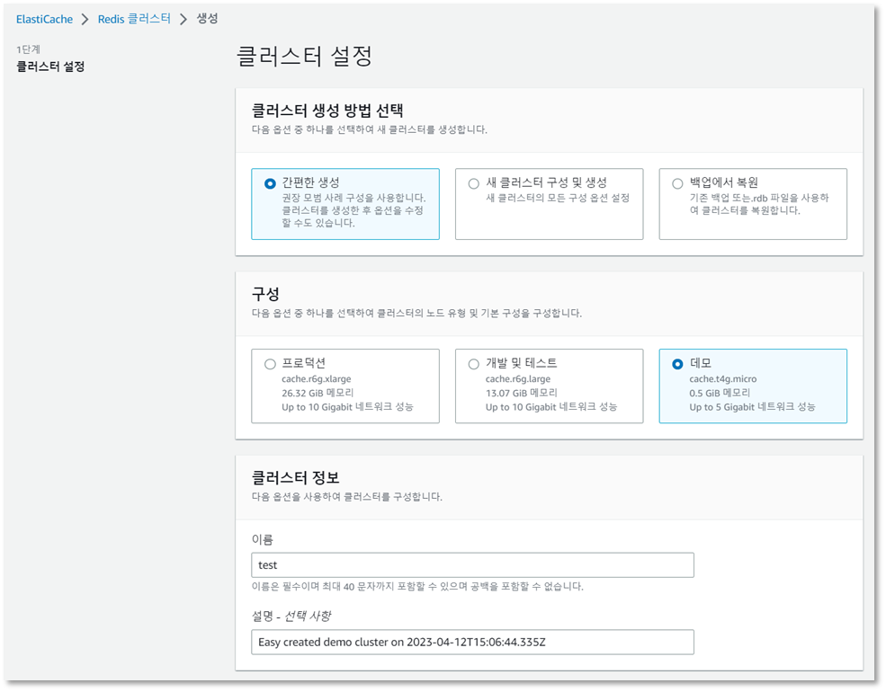 먼저 AWS ElastiCache for Redis를 생성해보아요~