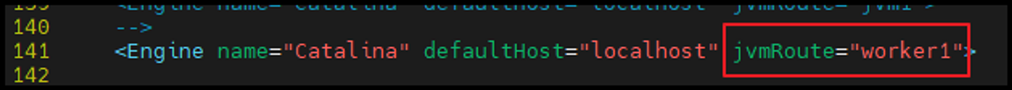 141 line에 jvmRoute="worker1" 추가