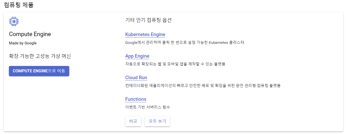 먼저 첫 번째로 Compute Engine 입니다.