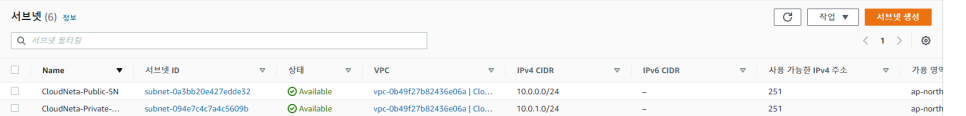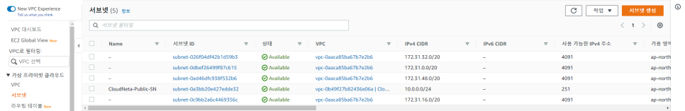-> 서브넷 생성 버튼을 클릭합니다.