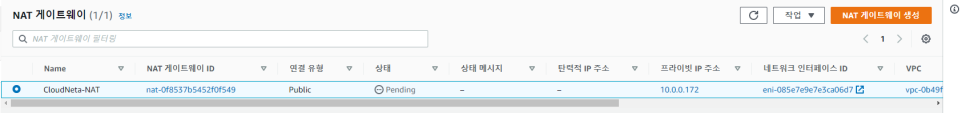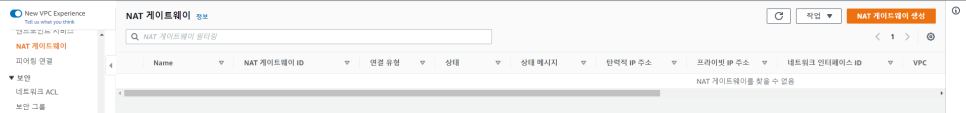 [경로] 서비스 - VPC - 가상 프라이빗 클라우드 - NAT 게이트웨이
