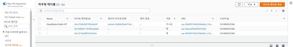 [경로] 서비스 - VPC - 가상 프라이빗 클라우드 - 라우팅 테이블