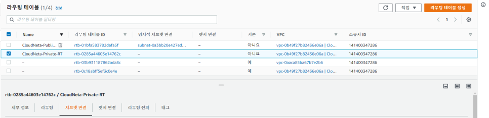 프라이빗 라우팅 테이블 생성 및 서브넷 연결