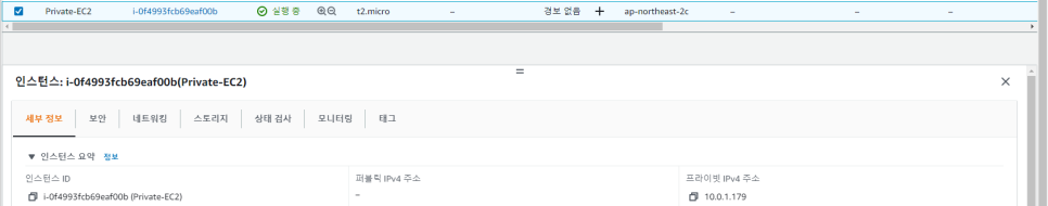 -> VPC 내에 프라이빗 EC2 인스턴스가 생성된 것을 확인할 수 있습니다.