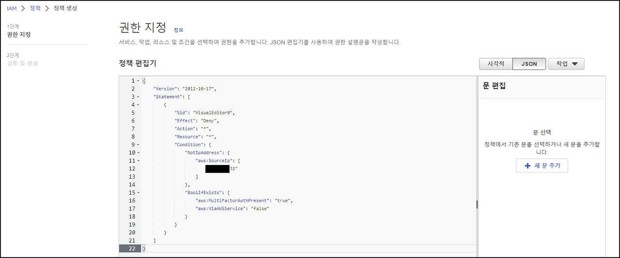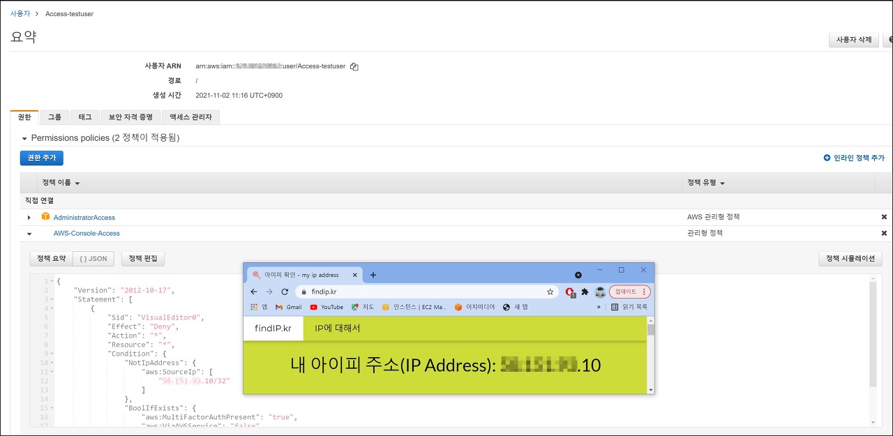 보안 강화를 위해 특정 IP 또는 대역만 AWS Console 접근 허용 하는 방법으로 다음과 같은 작업순서로 진행해보도록 하겠습니다.