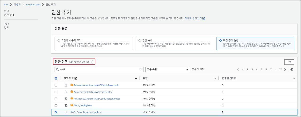(IAM 정책 등 계정 확인 가능 )